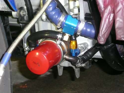 × [PR]上記の広告は3ヶ月以上新規記事投稿のないブログに表示されています。新しい記事を書く事で広告が消えます。 スバルインプレッサ用水冷式オイルクーラーです。 これを、HONDAX4に取り付けましょう。 CB1300SF(SC54)用として売っている、オイルクーラーの3倍の容量があり効果絶大の予定です。 ヤフオクで調達した配管とホース類 約5000円 水流のイメージ、太いほうから細いほうに流れます。 T分岐のところで、水冷オイルクーラーから来た冷却水と、シリンダーヘッドから来た 冷却水が合流して、ウオーターポンプのインペラーに吸い込まれます。 フィルターボスの取り外しには、ネジ抜きのエキストラクターを利用しました。 エンジン前の青いブロックから冷却水が水冷オイルクーラーに流れ込み 右側のホースからウオーターポンプに引き抜きされます。 冷却水ホースに汚れ防止の為の熱収縮チューブを被せました。 この装置は、冷却水がエンジンオイルを冷却します。 サーモスタットが閉まっているときは、水温の方が高いので、オイルを早期に暖める効果があります。 エンジンオイル温度が冷却水よりも高いときは、冷却水と熱交換を行い、オイルを冷却します。 またエンジンオイルの温度は冷却水の温度に依存しますので、過冷却を防止します。 空冷式オイルクーラーは一般走行時は冷えすぎなので、取り付けをしました。 PR