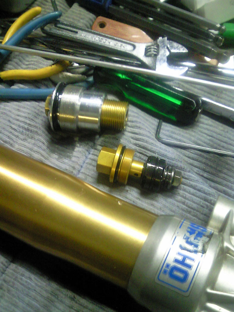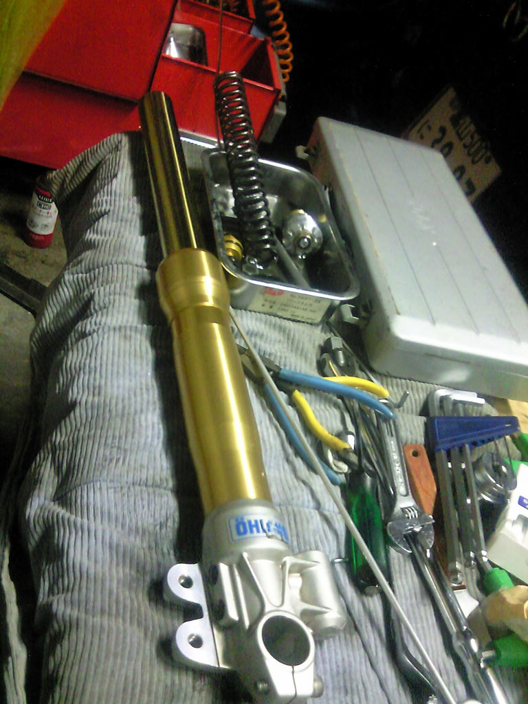 分解してみました。 正立フォークを 正立っつうこうとは、倒立もラインナップされている オーリンズの正立フォークです・・・・・・・ ヲィヲィって お思いでしょうけども 分解してみないと気が済まない性格でして ↓圧側(COMP)カートリッジケース ここを、オイルが行ったり来たりして カートリッジを通過するときに、抵抗が発生します。 その抵抗分が、ショックの硬さになります。 なので、オイルが柔いと簡単に通過できるんので 柔らかいサスとなるのです。 伸び(TEN)は同じような形状で内部に実装されます。 ところで まあ、ここまでは簡単にできるんですが~ ここから先に進めません・・・・・・ ボトムケースとカートリッジの締結は、上側から専用工具がないと外せないんです。 ↓専用工具 この工具は、持ってないので、これ以上進めません よって、オイルシールの外し方も不明です。 オイルシールはスナップリングが食い込む形で入っているので、下側から抜くような・・・・・ たぶん、カートリッジを外さないと交換できないんだと思います。 カートリッジを外す工具は、市販されてますので買えば出来るんですがね しかし、オイル交換は分解しなくても出来ることが判明しました。 この金色フォーク・・・・・・・・・ 1stオーナーが大事故で曲げてしまって 2ndオーナーが、ムリヤリ修正して乗っていましたが またまた、事故って、要らなくなったので 富山にやって参りました 2回も事故に遭遇するなんていう ちょっと問題のあるような部品ですが 捨てられる前に、分解してあげて 成仏させてあげましょう おまけ で、こうなるかも↓ PR |