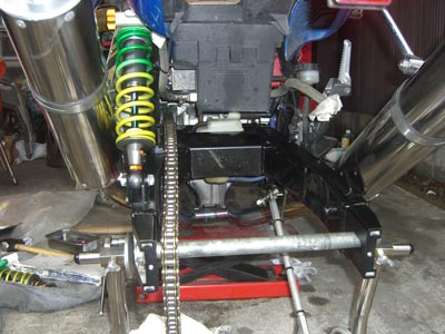今日はこのシャツ着て、アメリカンになったつもりで エルビス聞きながら、朝からバイクの部品交換です。 5月3~5日と兵庫県である、バイクの会合に参加するために 色を塗った足周り部品に交換します。 この辺の感覚は、じょすいィの人には判らんでしょうなー (笑) まーあえて言えば、友達の結婚式に 花嫁よりもハデなドレス着ていくような感覚か? ![]() なんか違うな~ まぁいいや ↓スイングアームを外した状態 ↓元スイングアーム ↓新スイングアームとNEWサス虫色 黒と黄色のコントラストが、とーても素敵な感じがしませんか? ↓借り組み状態 チェーン周りが古いグリースでゴテゴテでしたので 全部洗ってキレイキレイにしてあげました 笑 ↓完成の図 ↓完成の図 20ミリアップしたので、ケツが更に上がってしまいました。 黒く塗ったら、極太スイングアームの存在感が無くなってしまいましたが これでまた人と違うバイクなったゼイ 雨が降っていたので、乗れてませんです 自分で組み立てたバイクで、怖くて兵庫県までなんて行けませんので 今度の日曜日辺りに、試験走行して不具合調査をしないとなりませんなぁ 朝から作業をやって、飯も食わずに完成したのは23時でした。 StudioOxygenさんは意外と、手が遅いという事を発見してしまいました・・・・ PR