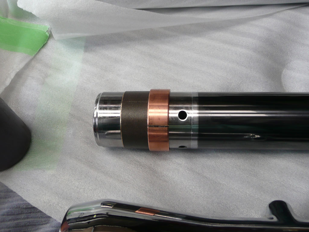 X4のフォークでダンピング調整が可能で、 X4純正よりも短く、SC54純正よりも長くて メッキとチタンで見た目もCOOLなヤツを作ってくれとの オーダーを受けましたので 6ヶ月の歳月を掛けてフロントフォークが完成しました。 ↑ インナーチューブは、SC54用です 円筒研削を施し、再メッキとバフ掛け、イオンプレーティングを2回施工した高級品です。 アウターチューブは、メッキ後、内部壁を規定寸法に収まるようバフ掛けし、ツルツルにした これもスペシャル品です。 スライドメタルです。 表面は、テフロンコートです。 ↑オイルシールドライバ ↑ 左の錘をスライドさせて、メタルとシールを挿入します。 ↑ 仮組 下がメッキで、上が光沢のあるガンメタリック色なので 見た目が、とても、クールです。 ↑ 内部はカートリッジ方式に変更してあります。 ダンピングとスプリングセット加重を変更できるようになっています。 また、カートリッジロッドもテフロン加工を施してあります。 オイルシールは、三元共重合体ニトリルゴム(XNBR)を使用した、スペシャルシールです。 トップキャップは、黒アルマイトを施しました。 総費用はオーリンズ正立フォーク2本分ぐらいでしょうか・・・・・・・ はっきり言って、自分が使いたいくらい、かっこいいです。 PR