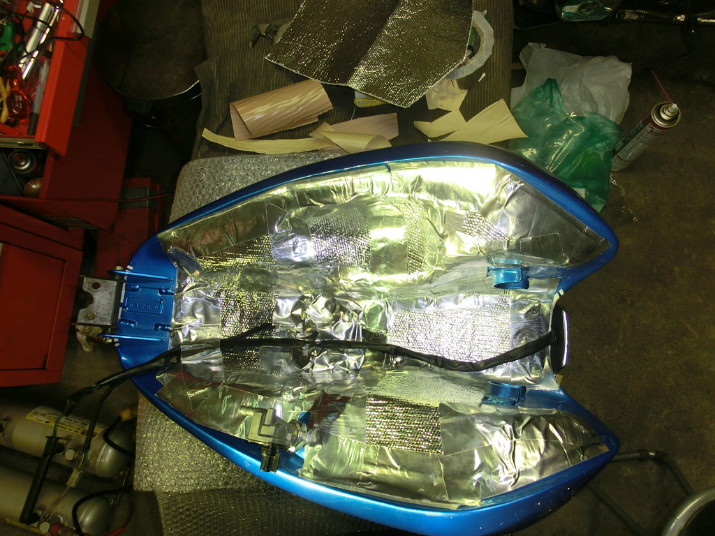 車で来たら殺すと言われていたにもかかわらず 塗装も仕上がっていたのにもかかわらず 茨木のおじさんに、車で会いに行きました・・・・ 前の日に試験走行してて、山の中でフロントタイヤの空気が抜けたんで 怖くてバイクで行けないと言ったんですが、 天気予報では集合当日と翌日の雨天が決定していたので、 雨だからバイクでこねぇんだろう と。。。。。 ↑ この人達も言ってました。 疲れて寝てるのに、夜中に部屋に乱入されたり、 ほんと、お疲れさまでした。 そんなこんなで、連休中は試験走行かねて連日300キロ超えでした。 いろいろ、不具合も発見されたんで、一気に修正して 今度の集合日には、是非バイクで行きたいもんです。(晴れたらね) ↓タンクの裏を断熱してないので、給油した直後に休憩すると燃料が膨張して漏れました。 ↓ ハイ、断熱処理しました。デイトナの張るタイプを1枚半使いました。 夏場は、渋滞中に燃料が沸騰することもあるので、断熱処理すると 沸騰しなくなるので、結構効果ありです。 ↓ビーターのタンクは、給油口の筒が深いので、タンク上部に無効空間が出来てしまいます。 なので、タンク容量イッパイイッパイ使うために、筒に空気抜きを開けました。 たぶん、1000cc位は余計に入るようになりました。 ただし、給油してすぐに休憩すると、給油口から漏れます。 こればっかりは、構造上しょうがありませんね。 20Lタンクは、13.5Lぐらいでリザーブになりました。 だいたい、240キロはメインタンクで走れます。 給油の事考えなくてもよくなったので、とっても楽になりました。 ↓ そーいえば、この人達も大挙して横浜方面から来てました。 レギュレーターが故障してたらしいですが、 ウチで、バッテリーを交換して行かれました。 マグロ送っていただきました。 ありがとうございます。 空気漏れの解決もしていただきました。 多謝。 PR |