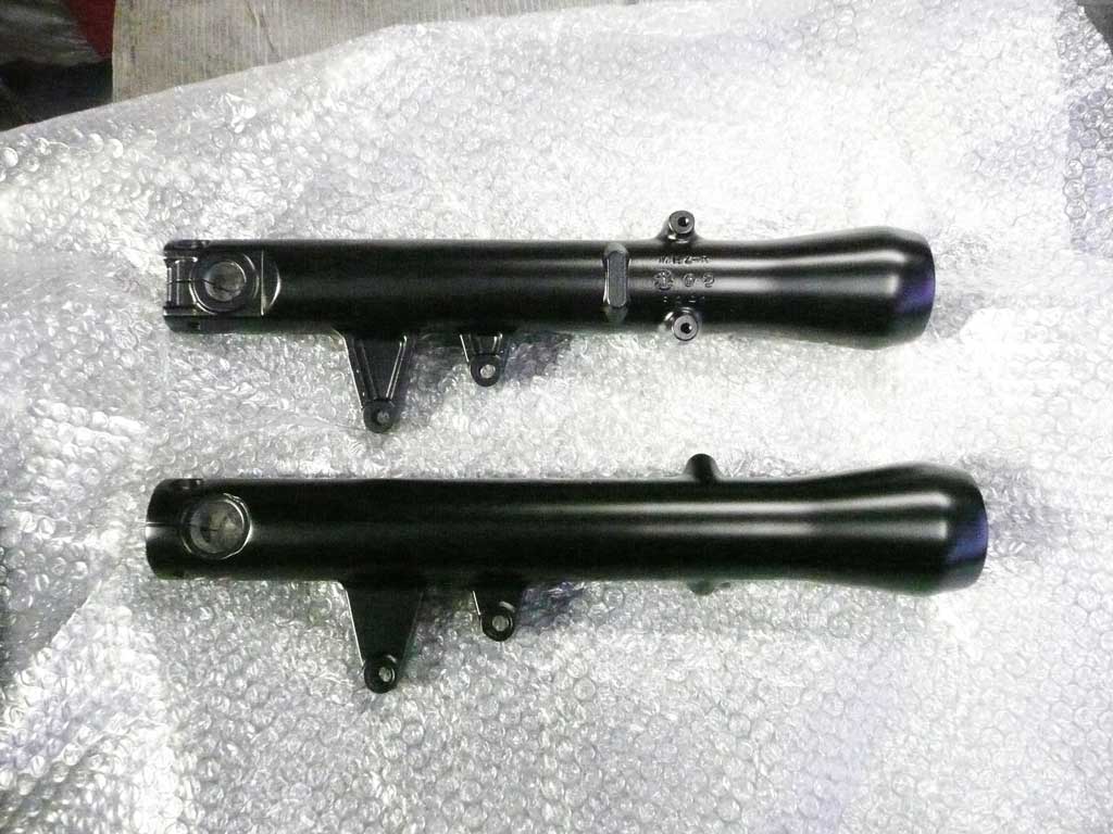 分解してみました。 正立フォークを 正立っつうこうとは、倒立もラインナップされている オーリンズの正立フォークです・・・・・・・ ヲィヲィって お思いでしょうけども 分解してみないと気が済まない性格でして ↓圧側(COMP)カートリッジケース ここを、オイルが行ったり来たりして カートリッジを通過するときに、抵抗が発生します。 その抵抗分が、ショックの硬さになります。 なので、オイルが柔いと簡単に通過できるんので 柔らかいサスとなるのです。 伸び(TEN)は同じような形状で内部に実装されます。 ところで まあ、ここまでは簡単にできるんですが~ ここから先に進めません・・・・・・ ボトムケースとカートリッジの締結は、上側から専用工具がないと外せないんです。 ↓専用工具 この工具は、持ってないので、これ以上進めません よって、オイルシールの外し方も不明です。 オイルシールはスナップリングが食い込む形で入っているので、下側から抜くような・・・・・ たぶん、カートリッジを外さないと交換できないんだと思います。 カートリッジを外す工具は、市販されてますので買えば出来るんですがね しかし、オイル交換は分解しなくても出来ることが判明しました。 この金色フォーク・・・・・・・・・ 1stオーナーが大事故で曲げてしまって 2ndオーナーが、ムリヤリ修正して乗っていましたが またまた、事故って、要らなくなったので 富山にやって参りました 2回も事故に遭遇するなんていう ちょっと問題のあるような部品ですが 捨てられる前に、分解してあげて 成仏させてあげましょう おまけ で、こうなるかも↓ 12ヶ月待ちでした。。。。。 付けようと思い描いて、気合い入れて注文しましたが 届く頃には、ラジアルの6ピストンキャリパーが発売されてしまう始末で キャンセルできないシステム。 さすがフランスクオリティ、ロゴがずれてしまっています。 しかし、こんなことで返品してたら、一体何時になったら届くのか判らないので 有り難く、受領しておきます。 出荷検査票は26/JAN/2006と記載されてる有様。 3年前に作った商品ですか・・・・・・・・ 船便が~とか、フランス人が作ってるから~とか 何時になったら来るか判りませんよ~ とか言われながらも 一応、納品されるところがエライ!!! さて、どうやって付けましょうか。 ところで、やっぱり、今時鋳鉄DISKでしょう!! 水に濡れたら、30秒でDISKが真っ赤に錆びてしまう 洗車したまま放置したら、パッドとDISKが固着してしまう 走りながらパッドで錆を落としたら、ホイールが真っ赤になってしまう あの鋳鉄DISKです。 PLUSμの鋳鉄は、材料が柔らかいのか初期の衝撃も全く無くて ブレーキを掛ければ、掛けるだけパッドもDISKも減ってしまう あまりにも減りがすごいもんだから、そのうち、DISKがもったいなくて 前ブレーキを掛けなくなって、後ろブレーキだけで制動するような、 おばかさん向けの、正統派システムと言えるでしょう。 ステンレスが好みの人は、カーボンロレーヌのベルリンガー用シンタードパッドがお勧めです。 これはこれで、ステンレスらしくガッツリDISKが青くなって効きも抜群です。 そろそろ、フロントDISKも使用限界値に近づいてきているので このキャリパーを使うときは、新アウターDISKになる予定だったりします。