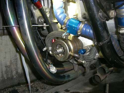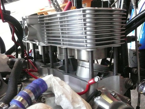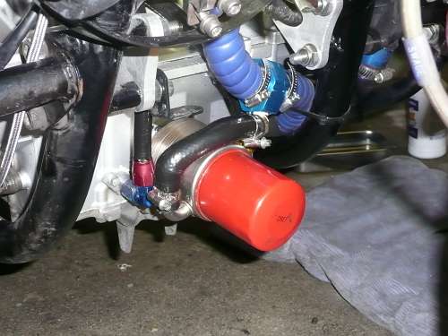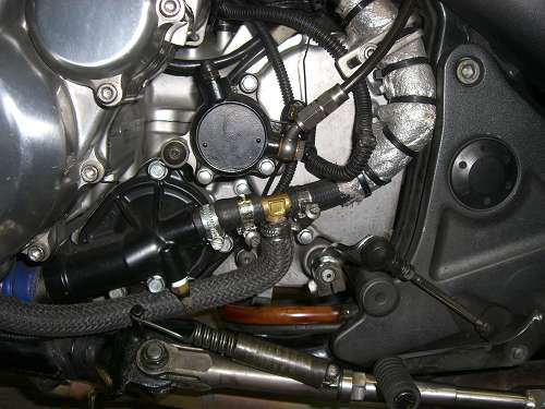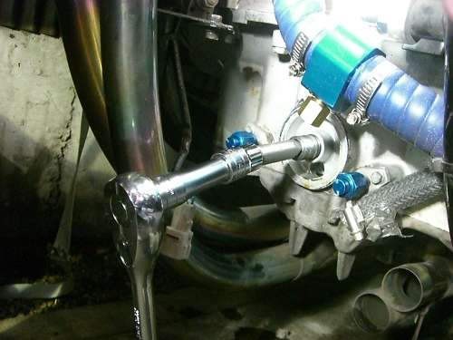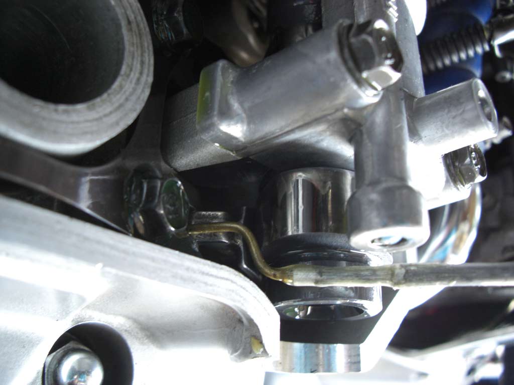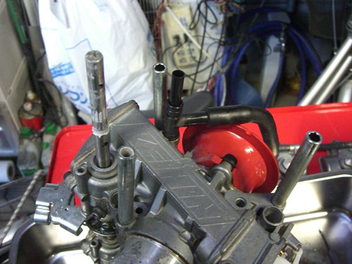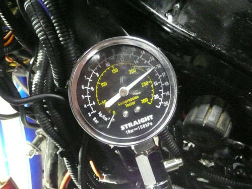 × [PR]上記の広告は3ヶ月以上新規記事投稿のないブログに表示されています。新しい記事を書く事で広告が消えます。 イマイチパワーが出ないので、バルブタイミングを確認します。 PR 画像はクリックすると拡大します・ ↑ HONDA X4・CB1300(SC38・SC40)の 冷却水系統図です。 冷間時のサーモスタットは単なるシャッターで、水路を遮断しています。 ウオーターポンプで送られた冷却水は、シリンダーから出ている 細い管で、ウオーターポンプに戻ります。 冷却水温度が、サーモスタット動作温度になると水路を開放し ラジエーターに冷却水を流し、冷却水温度を下げます。 ↑ SC54の冷却水系統は、ボトムバイパス式サーモを採用していますので 冷間時の冷却水は、エンジンから出てバイパスパイプを通り、 ウオーターポンプに戻ります。(この方式は、暖気時間が短いです) 温間時はバイパスパイプ行きの水路が遮断され、 ラジエーターの方向のみに冷却水が流れます。 水冷式オイルクーラーの効果としまして 一般的に油温の上昇は遅いですから 1・潤滑油温度の早期上昇(暖機時間の短縮) 空冷式と違い、冷却水と潤滑油を熱交換しますので 2・過度に潤滑油温度が下がることがない。 2の効果として、潤滑油中の燃料成分の揮発促進 水温・油温が低いと、潤滑油中に燃料が混じってオイルが薄くなってしまいます。 3・最大の効果 油温上昇が早い。 停止中でも冷却できる。 このSC54用冷却系統に変更するには以下の部品が必要になります。 1・SC54用ウオーターポンプカバー 2・SC54用サーモスタット 3・SC54用バイパスチューブ 4・5φシリコンキャップ(シリンダー止水用) 5・ホースバンド2個 オイルクーラーを取り付けるには 1・CBR600・SC54輸出用の水冷式オイルクーラー 2・パイプ類 3・冷却水インレットパイプの途中から冷却水を分岐するジョイント (水温センサーアダプターを利用します) これに変更すると、機関暖気時間の短縮によるエミッション向上と ほんの少しの燃費向上が得られますよ。 あと、冬場の燃費は向上するでしょう~ タブン *レースや渋滞路しか走らない人は、空冷式の方が良いです。 ↑ ピストン上死点をダイヤルケージを使用して探しています. ピストンは行程の中で、上死点付近で停止します。 クランク角度にすると、3度程停止しますので、 ダイヤルゲージが動かなくなった角度の半分が、 ピストン上死点であり、クランクが0度の位置です。 この位置を、タイミングホイールのTDC位置に針金でマーキングをします。 ↑バルブタイミング調整中 一般的にカムシャフトのデーターは、1mmリフトアップ時の角度と カムプロフィールのロブセンターの2種類が記載されてますので クランクを半時計方向に回して、1mmリフトアップ時は バルブリテーナーが1mm沈んだ位置と ロブセンター位置は、リテーナーが沈みきってから動き始めるまでの クランク角度の1/2位置のクランク角度を読みバルブタイミングを 希望のタイミング位置に合わせます。 面研磨するとバルブタイミングはずれますので ↓写真のように、カムスプロケットをバーニア加工(長穴)して、 可変できるようにします。 ↑バルブ測定の図 ちょっと治具の角度がおかしいですが バルブリテーナーに垂直になるように設置します。 このSC38のエンジンは、リテーナーが見える穴の垂直上に カム潤滑用のオイルジェット(青ペンキ位置)がありますので、それを逃げるように治具をセットします。 普通の、ダイヤルゲージでは測定できません。 ↓写真のように、先っちょがクランクした治具を製作しなければ測定できません。 ↑エンジンが組みあがって、バルブタイミングの調整も終わって圧縮圧力を測定します。 これは、圧縮比の測定ではなくて、実圧縮圧力の測定です。 普通は暖気終了後の温間時に測定しますが、データー取りの為に測定します。 冷間時で、平均16.2kg/cmもありました・・・・・・・ 圧力高すぎ。 温間時はピストンが膨張しますので更に高くなります。 高圧縮圧エンジンが完成しました。 もしかしたらエンジンが熱いときはセルが回らないかも知れませんね。 高圧縮となり、プラグの放電電圧は圧縮圧力に比例して高くなりますが ウオタニSPⅡのイグにションコイルはノーマルの20,000ボルトに比べ 40,000万ボルトの出力まで出せますのでプラグギャップを広げました。 広めることで、火炎核が大きくなって、燃焼しやすくなります。 イリジュウムプラグは標準0.4mmですが1mmまで広げました。 ノーマルエンジンに狭いプラグギャップでは低い電圧で放電してしまい SP2の性能を最大限使用する事はできません。 また、圧縮圧力が大きくなると、点火時期を進めてあげないといけませんが ウオタニSP2では最大40°までしか進角しませんので 43°ぐらいまで点火時期を進めてあげないといけません。 ウオタニのオヤジに言って、45°ぐらいまで進角できるユニットを 作ってもらおうか、スパークアドバンサーを少しずらしてやるか思案中だったりしま