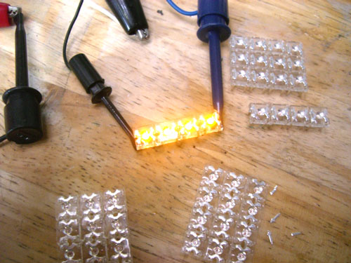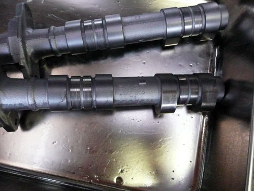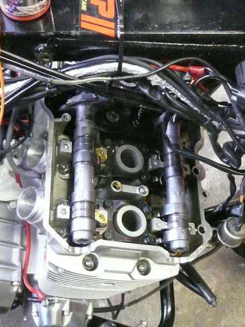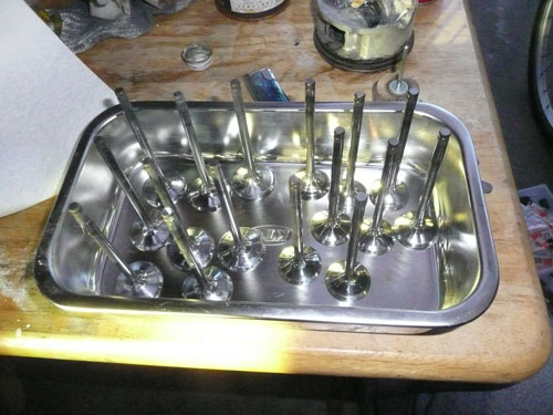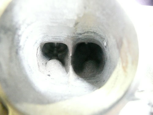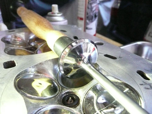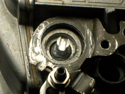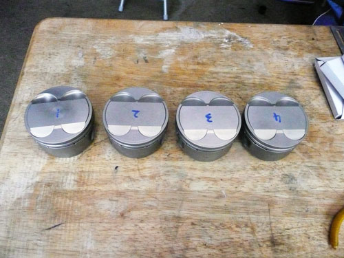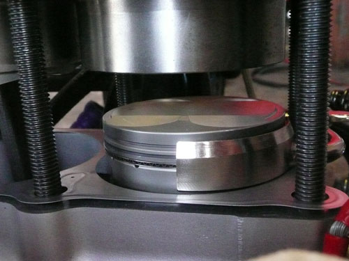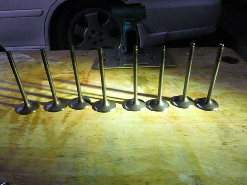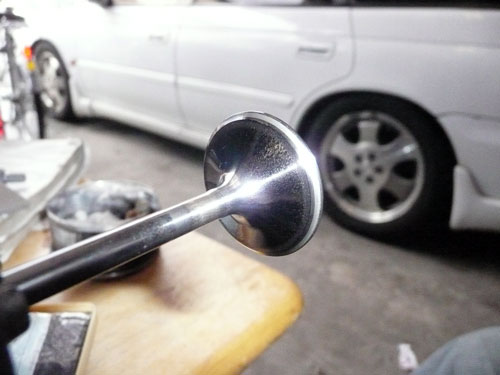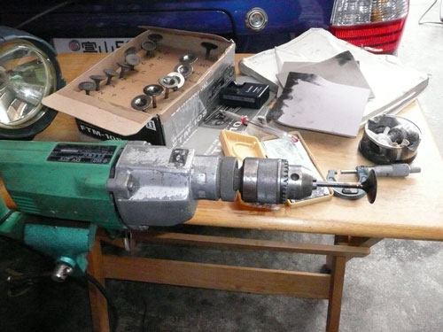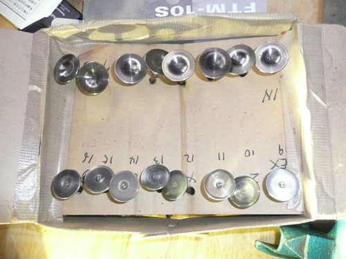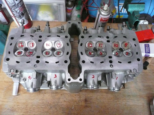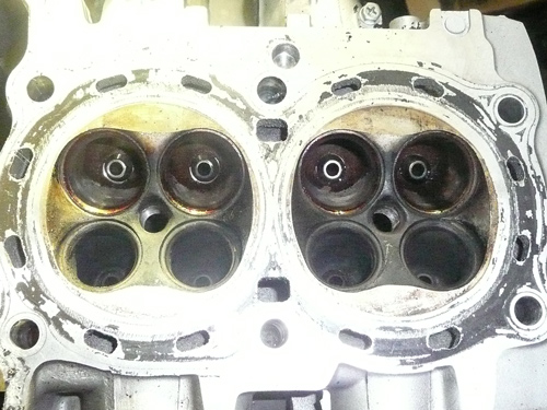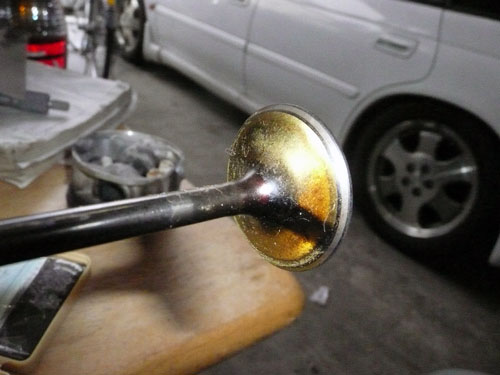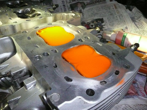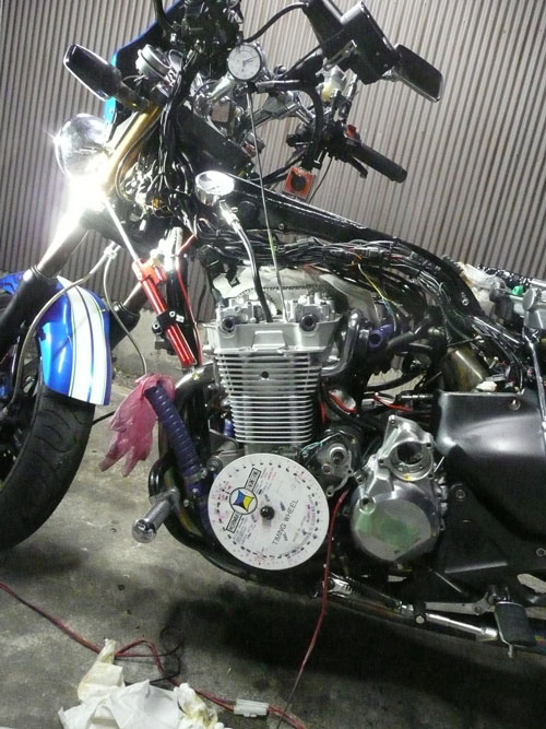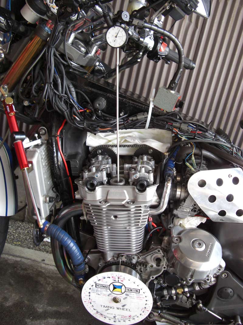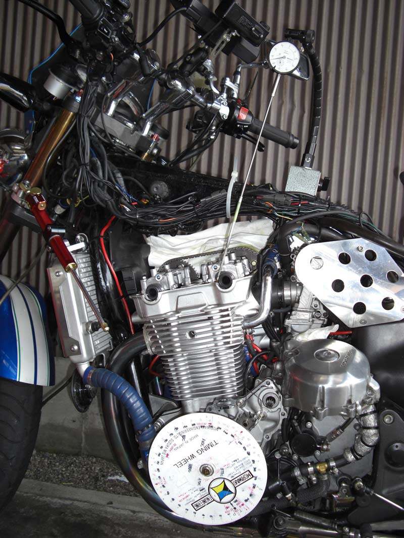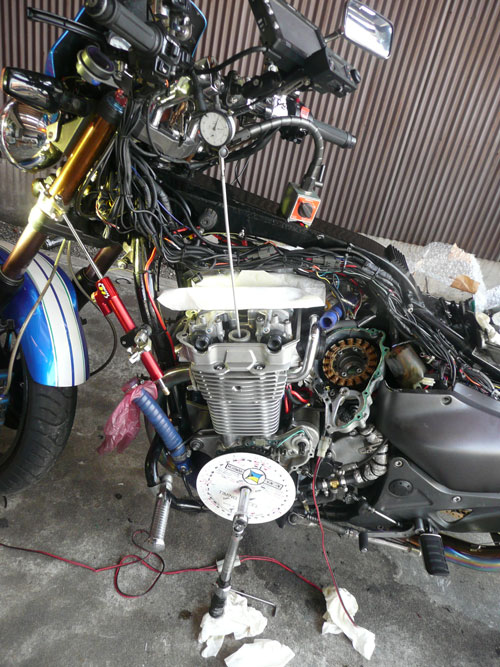 TPS(スロットルポジションセンサー)を取り付けます。 ↑ キャブレターの1番シリンダー側を外します ↑ FCRキャブレターを万力に固定します ↑ スロットルシャフトのセンターに5mmの穴を深さ10mm程度開けます。 ↑キャブレターの何かを取り付けできそうな穴にタップを立てます。 ↑その穴に4mmのイモネジを付けます。 ↑5mmのアルミ棒を、ヤスリで上のように加工し、TPSのアダプターを製作します。 ↑サグリ状況 ↑アダプター仮組み状況 ↑アタプター接着状況。エポキシ系。 ↑アダプター・ステー状況 ↑TPS取り付け状況 ↑完成。 ウオタニSPⅡの場合 イグナイターにTPSを取り付け 電極間の電圧を、スロットル全閉時に0.5Vに合わせる。 ウオタニSP2を利用する場合は、きめ細かな3次元進角点火マップが入ってます。 TPSを利用すると、アクセル開け始めから7割程度まで、最大50近くまで進角します。 通常の最大進角はアクセル全開時の事を言いますが、 アクセルを半分しか開けてないときは、シリンダーの充填効率が落ちますので、 実圧縮もその分低くなってしまいます。 その時は、火炎伝播も遅くなり、通常の点火時期では上死点後に 最大爆発圧力となり、燃焼効率が悪くなります。 TPSを取り付けるとROMに記録されている3次元点火マップによって、 アクセル開度に合った適切な進角点火時期にて点火されますので 燃焼効率の向上・燃費向上となります。 取り付けたことによる効果として、TPS固定時は最大燃費は どんなにがんばっても17km/Lでしたが、取り付け後は、最大で21km/Lとなった時もありますので、 ぜひ取り付けされることをお勧めいたします。 *16ピンフルパワーイグナイターは3次元点火制御をしていません。 *22ピンノーマルイグナイターは3次元点火制御をしています。(LD) *CBR1100XXの輸出仕様イグナイターは3次元点火制御をしています。 *ウオタニSP2は、16ピン22ピン両方に取り付けできます。 TPSを取り付けるきっかけは、↓ページであったりします。 http://park19.wakwak.com/~haruos.homupe/nikki1.htm 多謝!!! ↑JE 80mmPISTON WPC/MOS2加工 ↑ WPC/MOS2加工済み ガンメタ色になってしまいました。 モリブデンを表面にショットブラストして、突き刺さってる状態らしいです。 ↑ ピストンリング取り付け JEのピストンリングは、トップとセカンドの表記がありませんでしたので BABYFACEに問い合わせましたところ トップリング 茶色 セカンドリング 黒色 です。 最近の出荷分は、区別がないそうです・・・・ ↑ピストン取り付け。 ピンもWPC/MOS2加工しましたが、 自己潤滑作用があるようで滑るように挿入されます。 ↑ ピストン取り付け完了 ↑2mmボーリングアップ・0.6mmシリンダー面研磨、プラットホーニングしたシリンダーです。 標準ピストンクリアランスは64/1000μm 今回は72/1000μm 事情があってちょっと広めです。 ↑2番3番挿入中 ↑4番、ピストンリング圧縮中 ↑4シリンダー挿入完了。 前回は、慣れないせいか2時間掛かりましたが、 今回は20分で挿入できました。 ちなみに1人では、作業できません。 ↑シリンダーヘッド搭載 ↑ヨシムラST2カムシャフト WPC/MOS2加工済み ジャーナルとスリップ面がガンメタ色になりました。 ↑カムシャフト仮搭載 ↑カムホルダー締め付け 対角に数回に分けて締結しないと、某氏のように カムホルダーを割ってしまします。 ↑ヘッドまで完成!!! 作業時間約4時間です。 ↑ 新品のバルブです・・・・・ 色々問題があって、バルブは全数新品になりました・・・・・・・・ ↑ ガビガビだった新品バルブを、ピカピカに磨きました。 16バルブ磨くのに、6時間掛かりました。 ↑ヒカヒカですね。 バルブコンパウンド(油目)を付けて、摺りあわせををします。 今回は、シートカットも施したので軽く摺り合わせます。 当りは、中当り0.6mmです。 0.6mmだとかなり狭いですが、高圧縮を保つためには 当り幅は狭いほうが、面圧が高いので混合気が漏れません。 ↑ピカピカですな~ ちなみに磨いても、エンジン出力には何の関係もありません。 煤が付き難い、たこ棒が吸い付きやすい・・・・ この程度です。 ↑摺りあわせ完了!! ↑ ヘッド組み立て完了。 今回は、スプリングコンプレッサーは使用しませんでした。 秘密兵器の、バルブコッターツールで組み立てました。 1バルブ辺り、2分で組み立てできました。 なんで、バルブを新品にしたのかと言うとですね シートの当たり幅が1.2mmのバルブがあったのです そこまで行くと、どんだけ摺り合わせしても、 当たり幅が広くなる一方で、何の効果もありません。 この後の工程の事もあるし ここは潔く、全数シートカットと新品バルブになりました。 Special Thanks Mr KOIDE LEDウインカーを製作します。 Super Flux:黄色LED L-7679C1SEC-H Kingbright社の黄色フラックスLEDです。 指向特性70度 サイズ:7.6×7.6mm 波長:589nm 光束:4,000mcd(Max) 定格:2.9V/70mA 指向特性:70度 レンズ色:無色透明 タイプ:ストッパー有 標準の5%の能力でで点灯させたところ。 このLEDをウインカーあたり72個使います。 表側